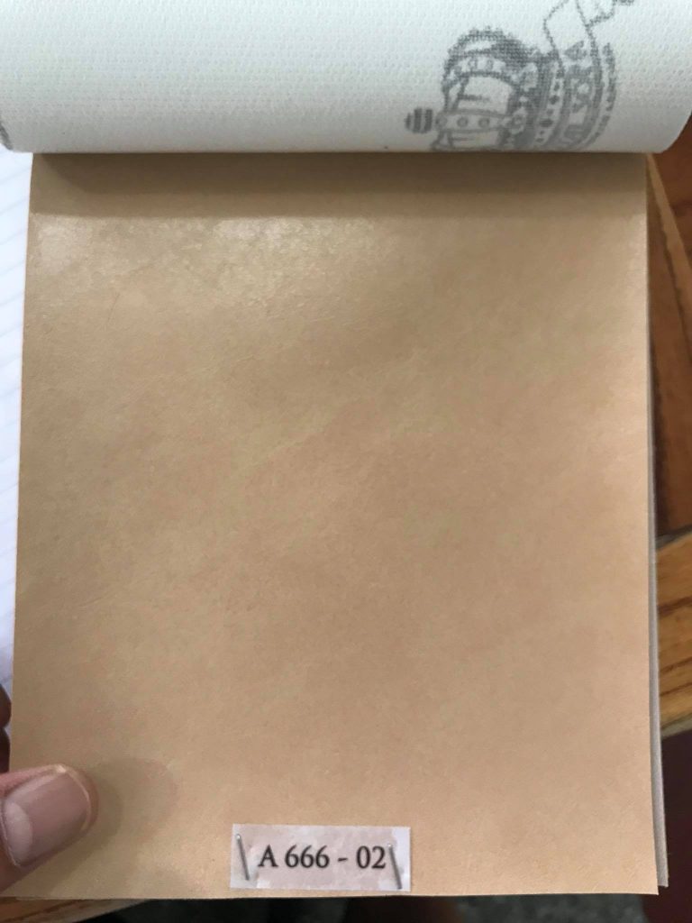 Mẫu vải giả da có mã A666-02 là một sản phẩm da cao cấp, nằm trong bộ sưu tập vải giả da cao cấp A666, gồm 36 màu. Sản phẩm có độ dầy 1 ly, khổ da 1.4m, vân da cao cấp, lót chắc chắn bền đẹp. Sản phẩm thích hợp làm những sản phẩm liên quan đến ghế da như ghế sofa, ghế da ô tô,… Bộ da A666 rất được khách hàng ưa chuộng để tạo nên những sản phẩm chất lượng.