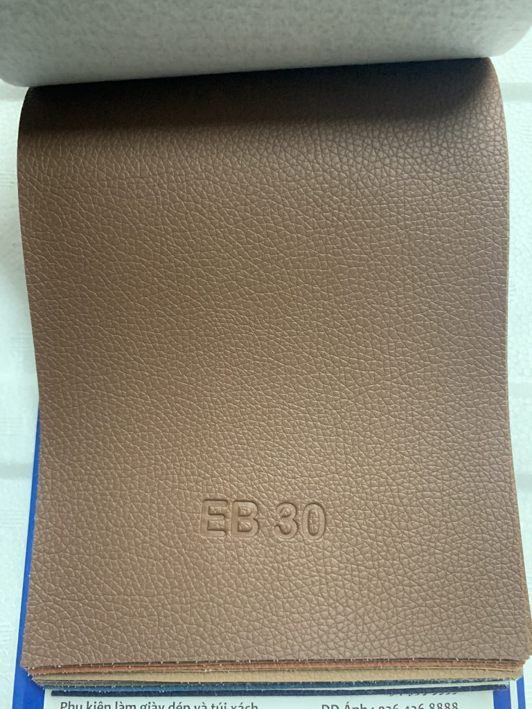 Mẫu vải giả da có mã EB30 là một sản phẩm da cao cấp, nằm trong bộ sưu tập vải giả da cao cấp EB, gồm 45màu. Sản phẩm có độ dầy 1 ly, khổ da 1.4m, vân da cao cấp, lót chắc chắn bền đẹp. Sản phẩm thích hợp làm những sản phẩm liên quan đến ghế da như ghế sofa, ghế da ô tô,… Bộ da EB rất được khách hàng ưa chuộng để tạo nên những sản phẩm chất lượng.