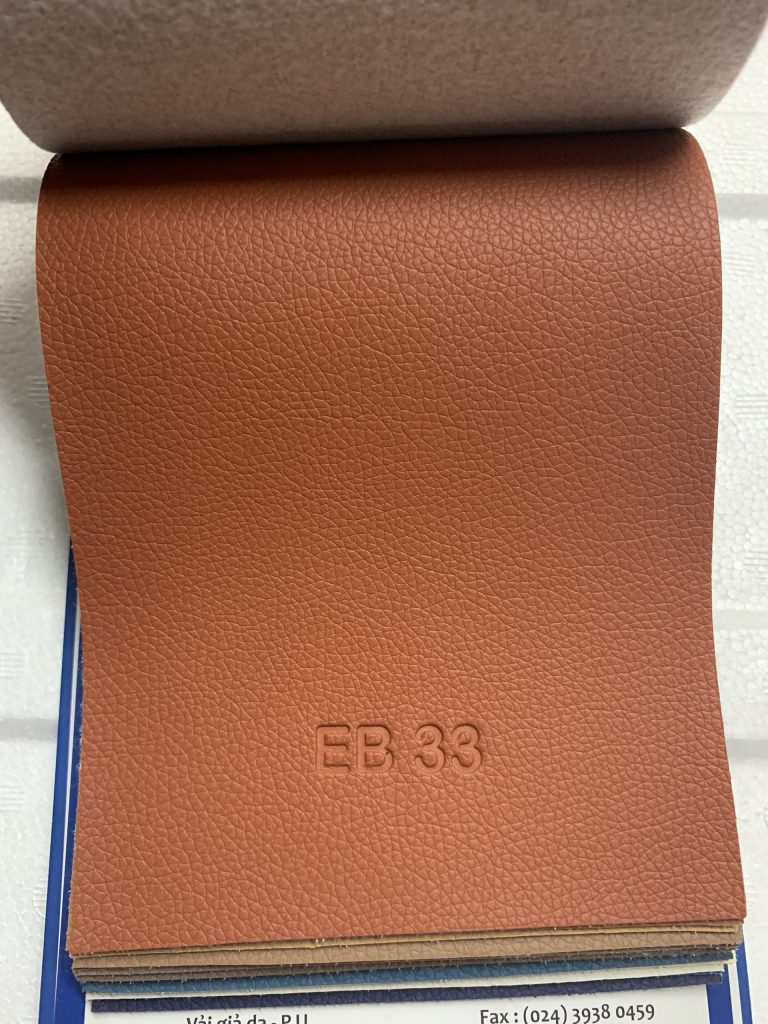Mẫu vải giả da có mã EB33 là một sản phẩm da cao cấp, nằm trong bộ sưu tập vải giả da cao cấp EB, gồm 45màu. Sản phẩm có độ dầy 1 ly, khổ da 1.4m, vân da cao cấp, lót chắc chắn bền đẹp. Sản phẩm thích hợp làm những sản phẩm liên quan đến ghế da như ghế sofa, ghế da ô tô,… Bộ da EB rất được khách hàng ưa chuộng để tạo nên những sản phẩm chất lượng.