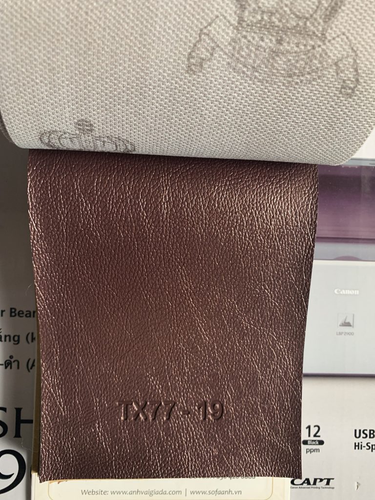 Mẫu vải giả da có mã TX77-19 là một sản phẩm da cao cấp, nằm trong bộ sưu tập vải giả da cao cấp TX77, gồm 21 màu. Sản phẩm có độ dầy 1 ly, khổ da 1.4m, vân da cao cấp, lót chắc chắn bền đẹp. Sản phẩm thích hợp làm những sản phẩm liên quan đến ghế da như ghế sofa, ghế da ô tô,… Bộ da TX77 rất được khách hàng ưa chuộng để tạo nên những sản phẩm chất lượng.