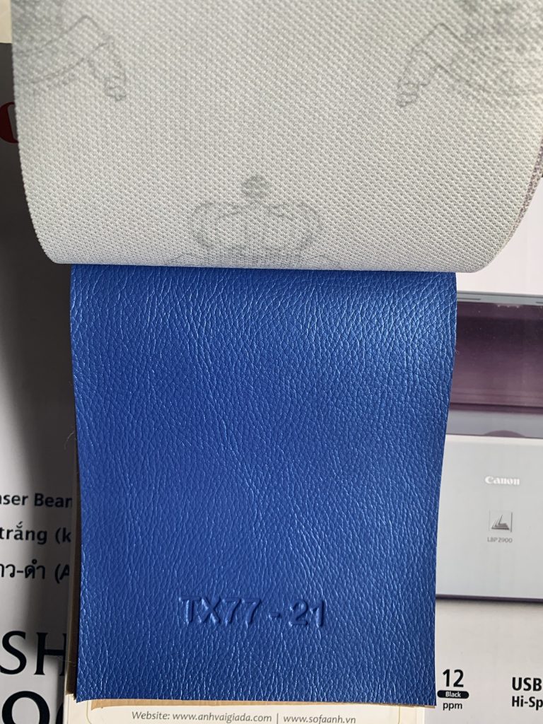 Mẫu vải giả da có mã TX77-21 là một sản phẩm da cao cấp, nằm trong bộ sưu tập vải giả da cao cấp TX77, gồm 21 màu. Sản phẩm có độ dầy 1 ly, khổ da 1.4m, vân da cao cấp, lót chắc chắn bền đẹp. Sản phẩm thích hợp làm những sản phẩm liên quan đến ghế da như ghế sofa, ghế da ô tô,… Bộ da TX77 rất được khách hàng ưa chuộng để tạo nên những sản phẩm chất lượng.