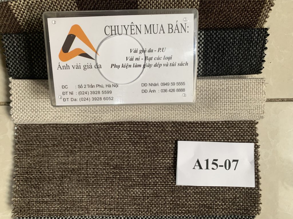 Vải nỉ A15-07 thuộc bộ sưu tập mẫu vải nỉ A15 gồm 15 màu. Đây là sản phẩm có màu như hình, thân thiện và khá đẹp mắt, được ứng dụng nhiều trong các sản phẩm nội thất như ghế sofa… Mẫu vải A15 là sản phẩm vải thô cao cấp, từng sợi vải được dệt chuẩn chỉ, xen kẽ, đan khít vào nhau tạo nên sản phẩm chất lượng.