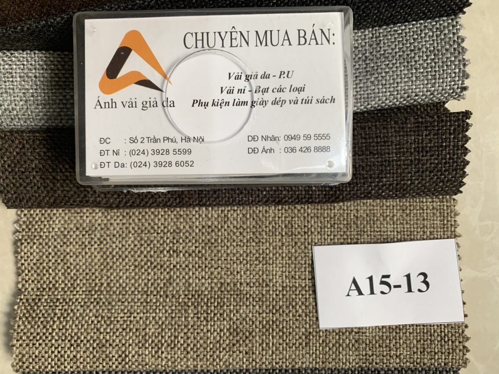 Vải nỉ A15-13 thuộc bộ sưu tập mẫu vải nỉ A15 gồm 15 màu. Đây là sản phẩm có màu như hình, thân thiện và khá đẹp mắt, được ứng dụng nhiều trong các sản phẩm nội thất như ghế sofa… Mẫu vải A15 là sản phẩm vải thô cao cấp, từng sợi vải được dệt chuẩn chỉ, xen kẽ, đan khít vào nhau tạo nên sản phẩm chất lượng.