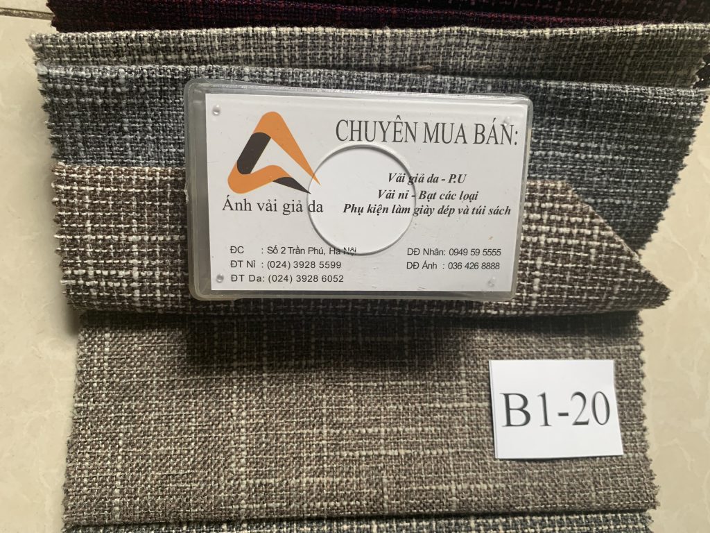 Vải nỉ B1-20 thuộc bộ sưu tập mẫu vải nỉ B1 gồm 37 màu. Đây là sản phẩm có màu như hình, thân thiện và khá đẹp mắt, được ứng dụng nhiều trong các sản phẩm nội thất như ghế sofa…