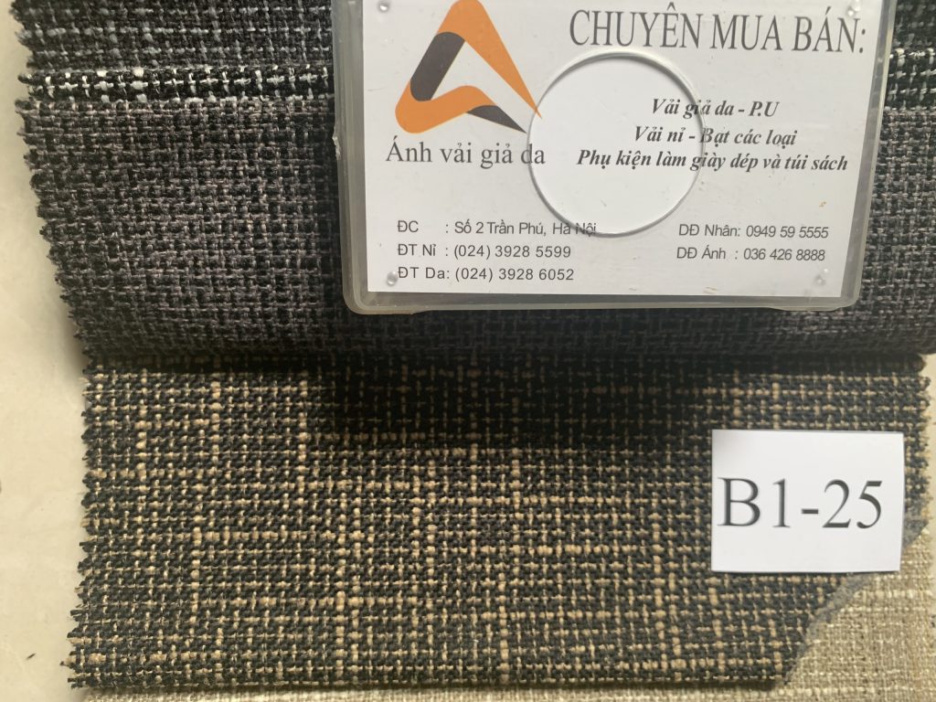 Vải nỉ B1-25 thuộc bộ sưu tập mẫu vải nỉ B1 gồm 37 màu. Đây là sản phẩm có màu như hình, thân thiện và khá đẹp mắt, được ứng dụng nhiều trong các sản phẩm nội thất như ghế sofa… Mẫu vải B1 là sản phẩm vải thô cao cấp, từng sợi vải được dệt chuẩn chỉ, xen kẽ, đan khít vào nhau tạo nên sản phẩm chất lượng.