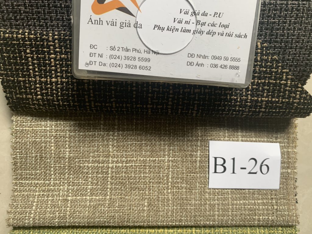 Vải nỉ B1-26 thuộc bộ sưu tập mẫu vải nỉ B1 gồm 37 màu. Đây là sản phẩm có màu như hình, thân thiện và khá đẹp mắt, được ứng dụng nhiều trong các sản phẩm nội thất như ghế sofa… Mẫu vải B1 là sản phẩm vải thô cao cấp, từng sợi vải được dệt chuẩn chỉ, xen kẽ, đan khít vào nhau tạo nên sản phẩm chất lượng.