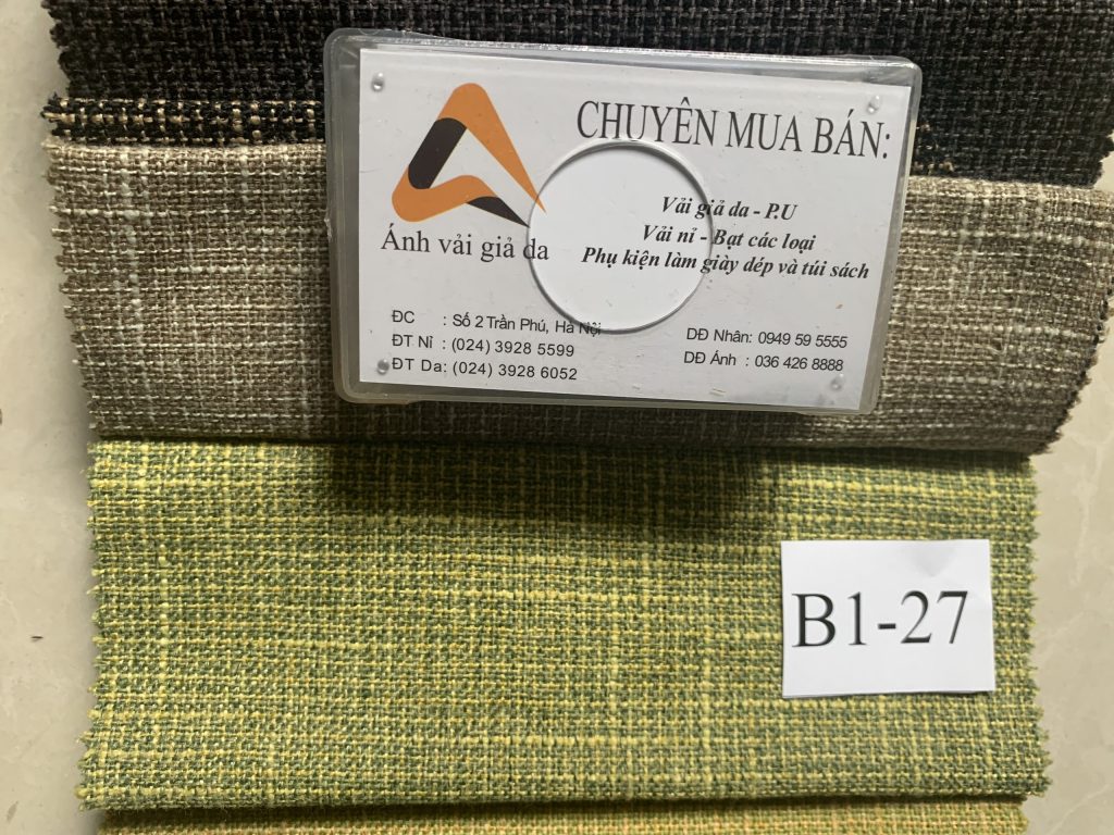 Vải nỉ B1-27 thuộc bộ sưu tập mẫu vải nỉ B1 gồm 37 màu. Đây là sản phẩm có màu như hình, thân thiện và khá đẹp mắt, được ứng dụng nhiều trong các sản phẩm nội thất như ghế sofa… Mẫu vải B1 là sản phẩm vải thô cao cấp, từng sợi vải được dệt chuẩn chỉ, xen kẽ, đan khít vào nhau tạo nên sản phẩm chất lượng.